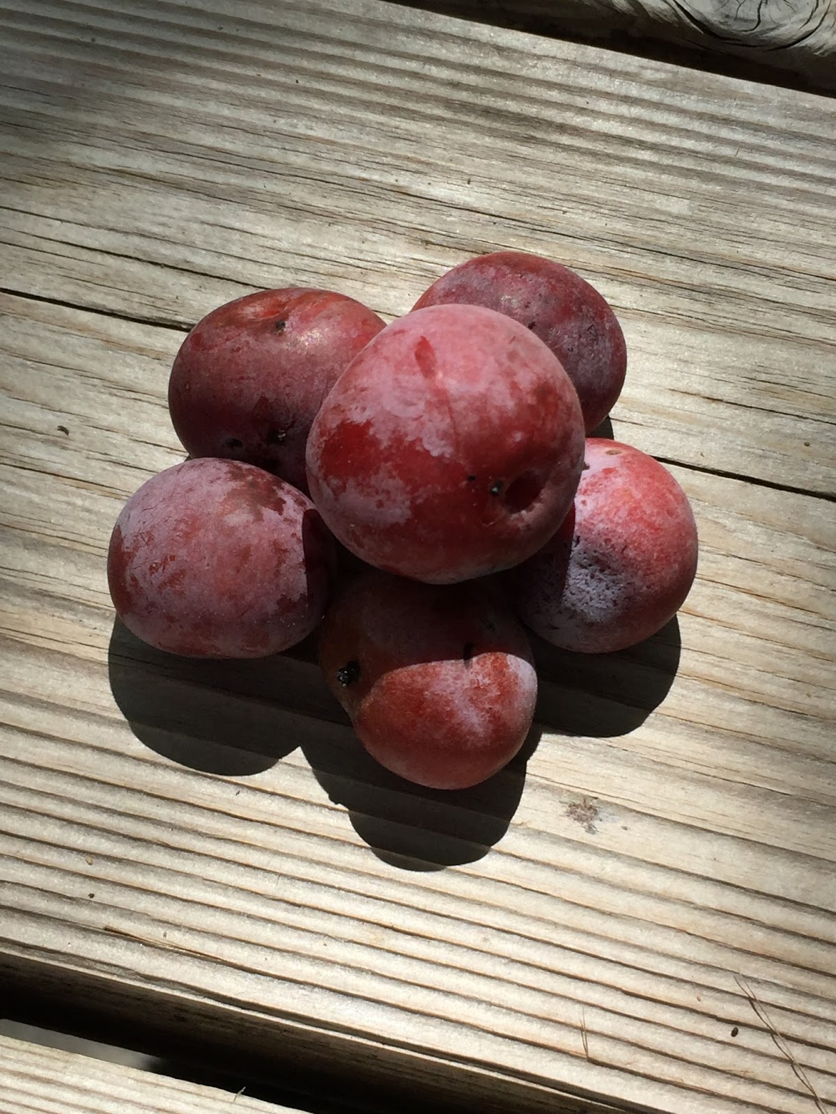 Once the plums started falling, late July, I thought about jam too and it turns out, they need very little processing to go from fruit on the sidewalk (warm and incredibly fragrant) to jam in the fridge. About 30 minutes But there's a lot of room for experimenting, which I love. How long to cook them the first boil? How much sugar? How long to boil the juice and sugar? Pulp or no pulp? A rolling boil or a gentle simmer? Lid on or lid off? A few skins in the juice for color? How much pectin is in the plums? Do I need to add any? How much ripe versus underripe fruit? All these things make a difference, and so there's room to play with this for at least a week. And the plums keep coming. Small batches! Perfect for experimenting.